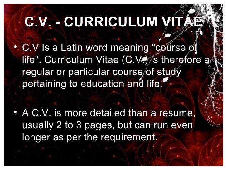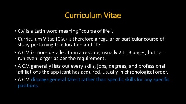 Curriculum Vitae Cv Is Latin For Course Of Life In Contrast