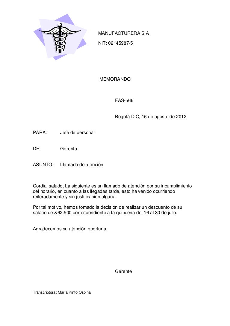 Modelo De Memorando Llamado De Atencion Por Llegar Tarde